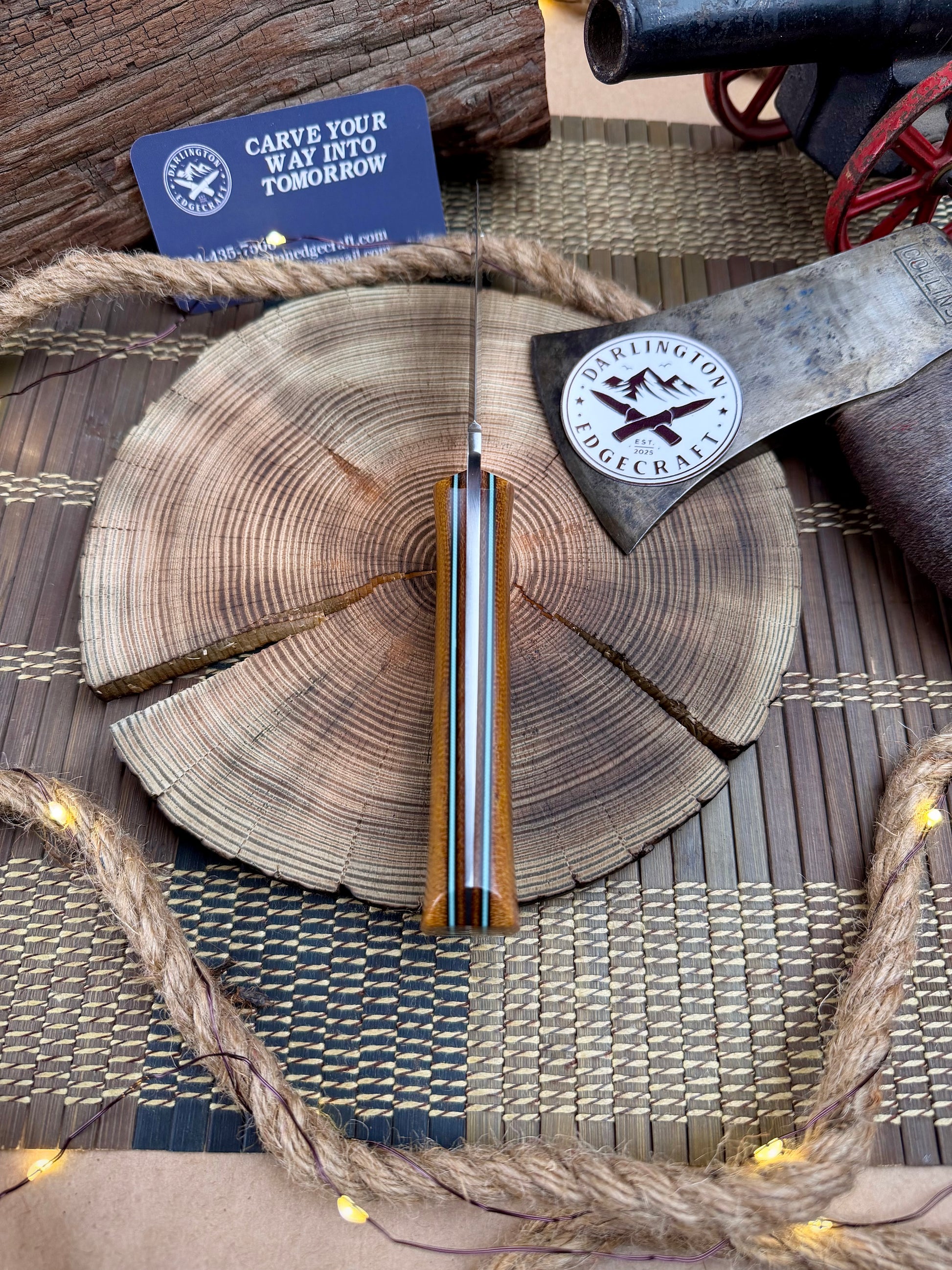 Pinouts: 1/4 black micarta, 1/8 Tiffany g10, 1/4 stainless steel lanyard tube