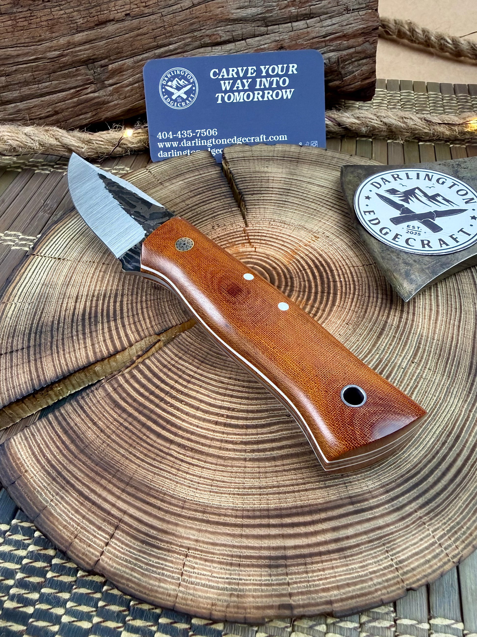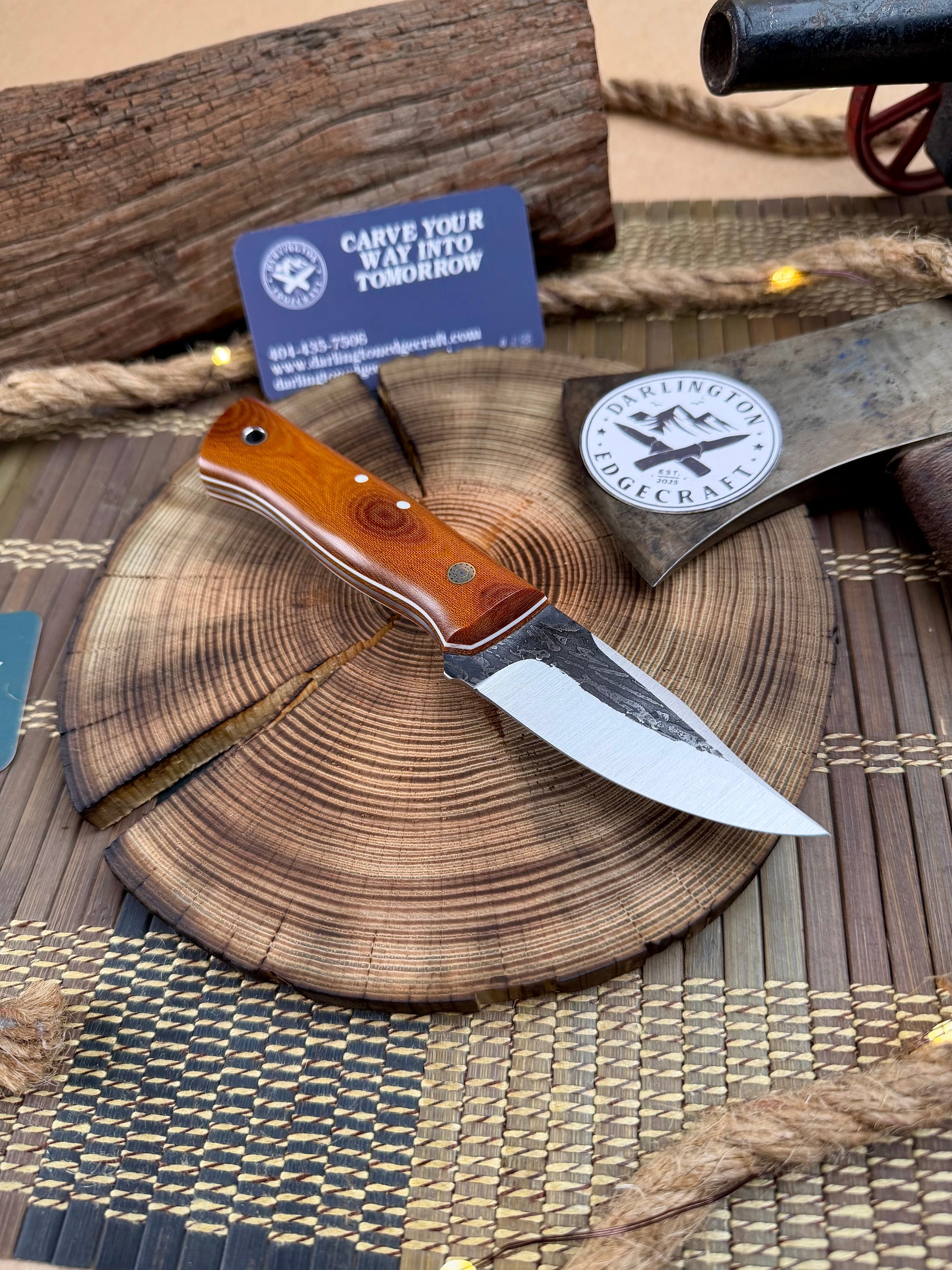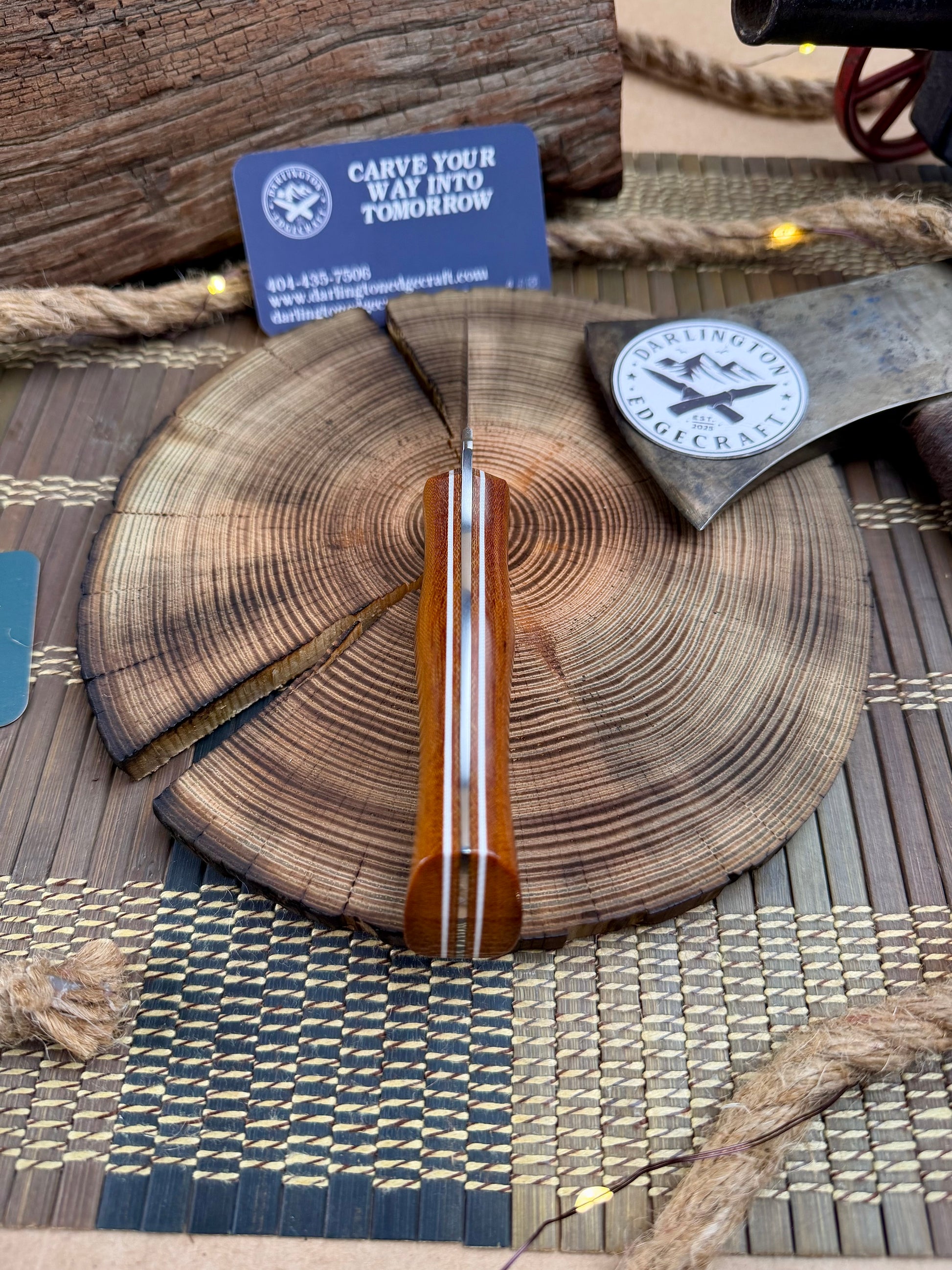 Handle Material: Vintage canvas micarta. White g10 pinstripe on natural micarta liners